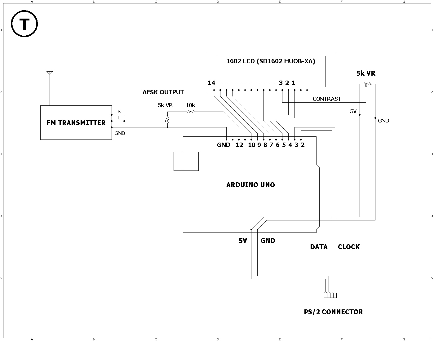 ASCII-88ビットASCIIコードでのテキスト送受信プログラムの例です。ASCIIコードはARDUINOの内部データそのものなので、符号の定義が必要ありませんね。そのかわり、BAUDOTには含まれない[BackSpace]キーの処理等が追加となります。 |