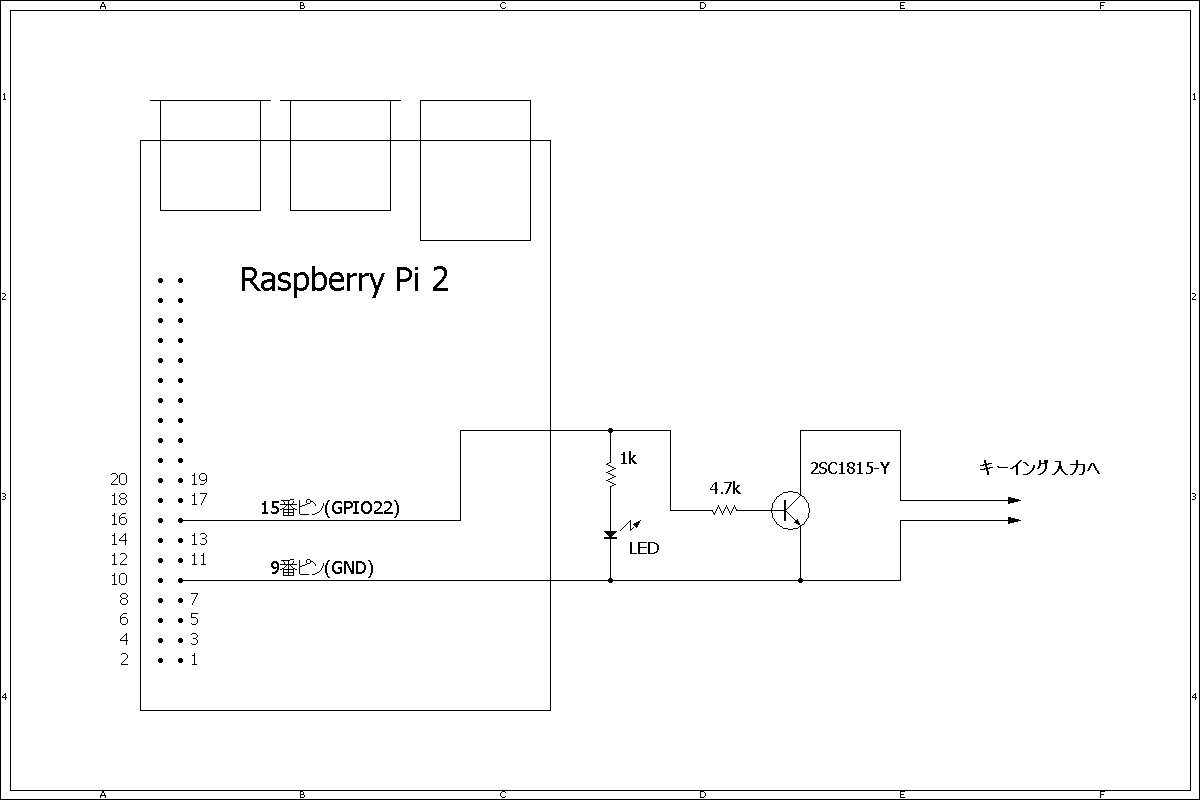 キーイング回路図のようにトランジスタを介してキーイングしてください。LEDは信号モニタです。 |